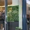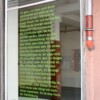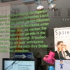 Klebeschrift eines Spam-Fülltextes auf Brückengeländer / Adhesive lettering of a spam filltext on bridge railing