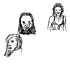 Schnell gefertigte Freihandzeichnungen mit Filzstift oder Edding. Die Motive entstehen nach Vorlagen aus privaten Fotosammlungen oder Abbildungen aus Magazinen und Internet.